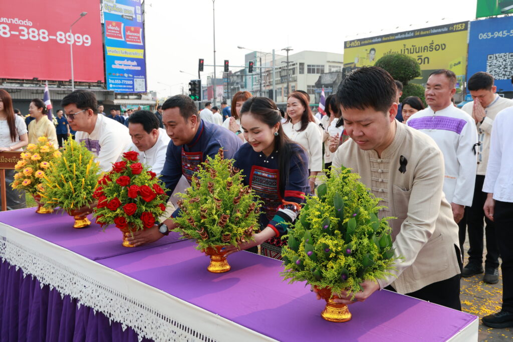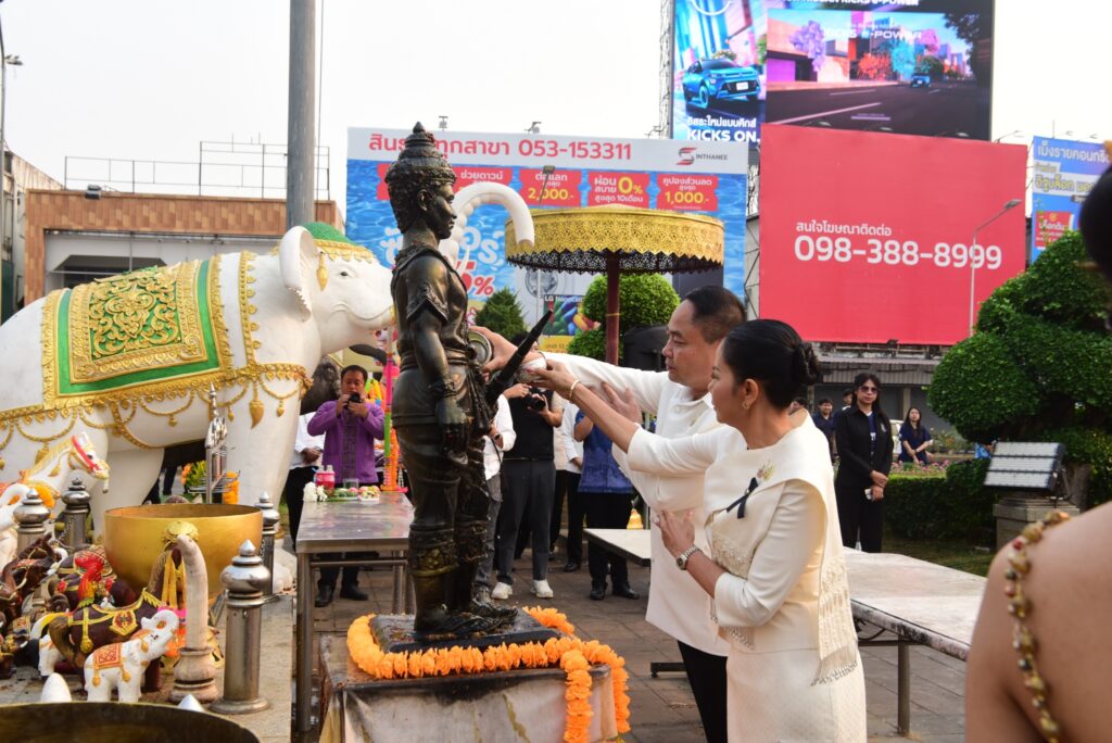 บรรยากาศเทศกาลสงกรานต์ หรือ “ปี๋ใหม่เมือง” ของจังหวัดเชียงรายปีนี้ เต็มไปด้วยความคึกคักและเปี่ยมด้วยศรัทธา เมื่อวันที่ 20 เมษายน 2569 นายชูชีพ พงษ์ไชย ผู้ว่าราชการจังหวัดเชียงราย พร้อมด้วยรองผู้ว่าราชการจังหวัดเชียงราย นำหัวหน้าส่วนราชการ ศาล ทหาร ตำรวจ นายอำเภอ และประชาชนชาวเชียงรายจากทุกภาคส่วน ร่วมประกอบพิธีสรงน้ำอนุสาวรีย์พญามังรายมหาราช ณ บริเวณห้าแยกพญามังรายมหาราช อำเภอเมืองเชียงราย